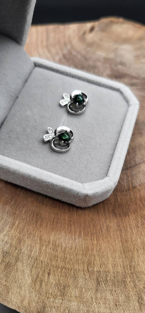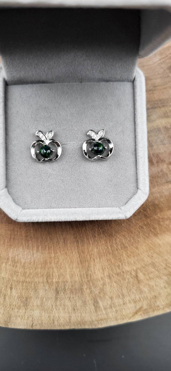 Ohrstecker mit schwarzem Opal in Sterling-Silber – faszinierendes Farbspiel in edler Fassung. Jeder Stein schimmert individuell in Grün-, Blau- und Rottönen. Ein eleganter Blickfang für Tag und Abend.