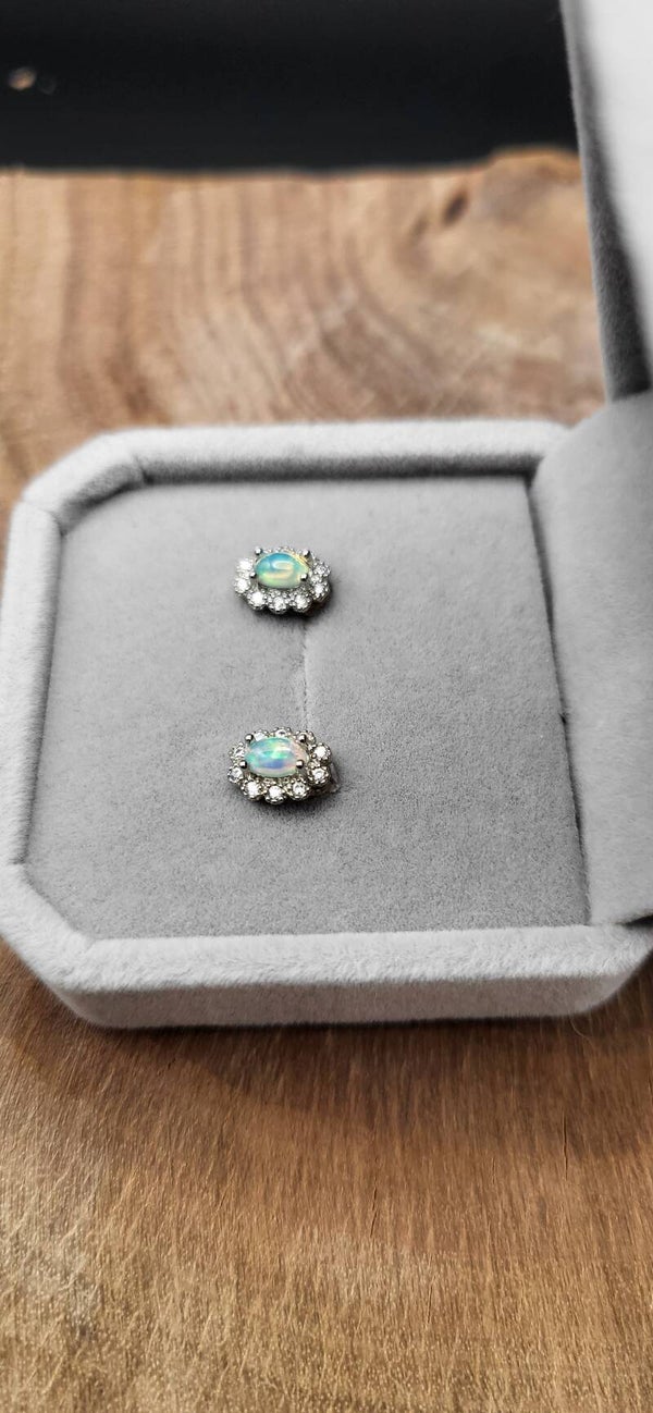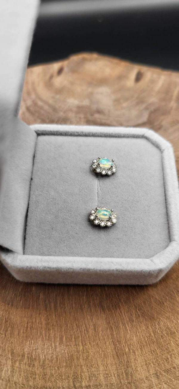 Ohrstecker mit weißem Opal in Sterling-Silber – sanft schimmernde Farbreflexe in edler, schlichter Fassung. Leicht zu kombinieren und ideal für alle, die dezente Eleganz mit besonderem Effekt lieben.