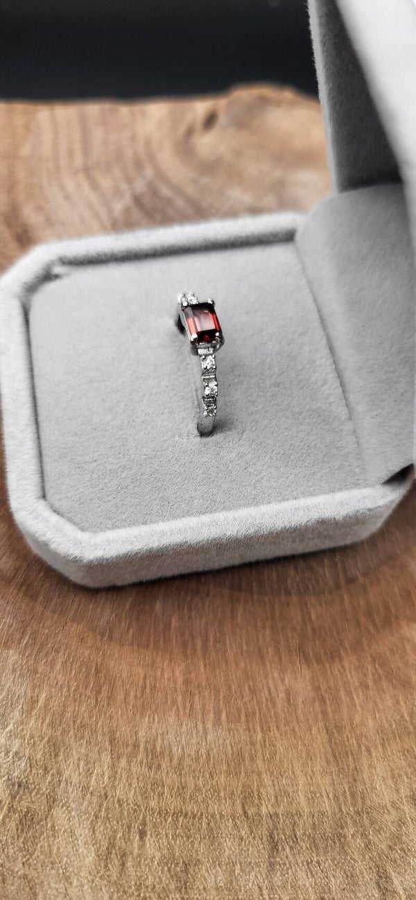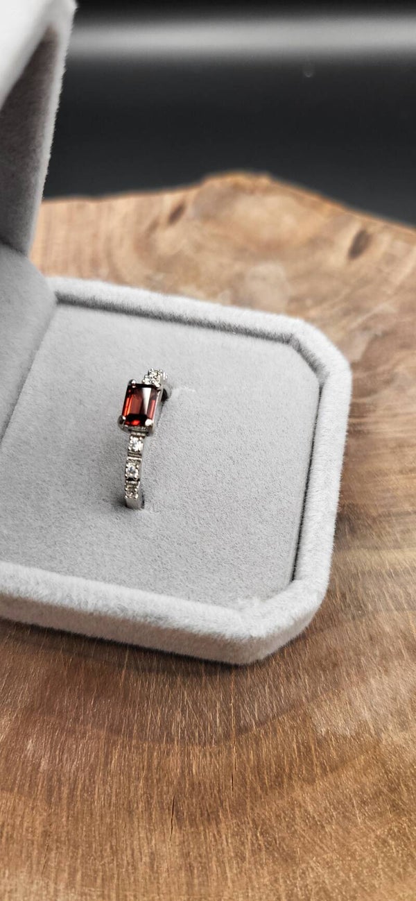 Ring mit Granat in Sterling-Silber – tiefes Weinrot in edler Kontrastfassung. Der intensiv leuchtende Stein setzt ein kraftvolles Statement und verleiht jedem Outfit Ausdruck und Eleganz. Ideal für Liebhaber klassischer Farbakzente.