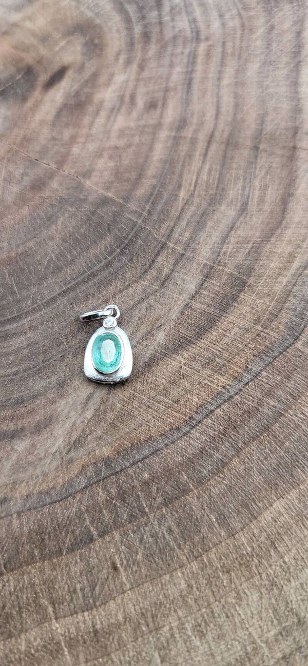 Eleganter Anhänger aus hochwertigem Sterlingsilber, verziert mit einem leuchtend grünen Smaragd. Der edle Stein symbolisiert Harmonie und Erneuerung und verleiht jedem Outfit einen Hauch von Luxus. Perfekt als besonderes Geschenk oder stilvolles Accessoire für jeden Tag.